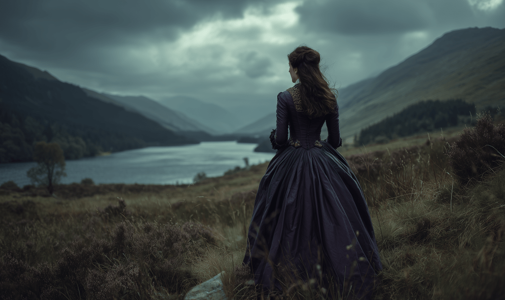 Rose paused to take in the view of the loch down the hill. The heavy fog which had rested on the lake earlier had blown away through the heather in the ravine and over the sloping hills. The night was now clear, and Rose looked in awe at the deep midnight–blue sky and the white caps that rolled over the surface of the loch. The soft waves were lifted by the wind, their tips glistened being touched by beams of cold moonlight.